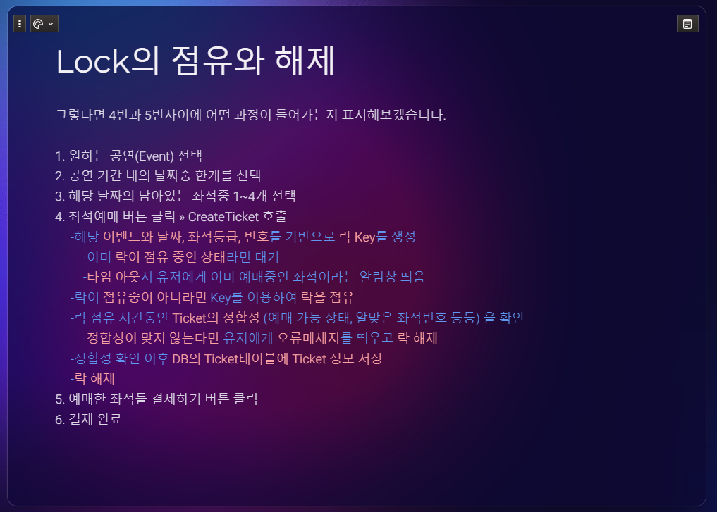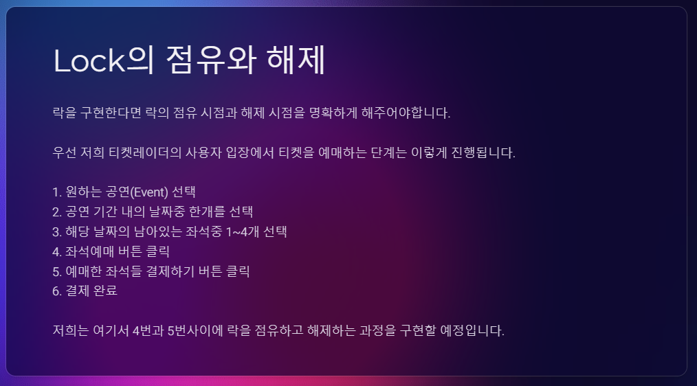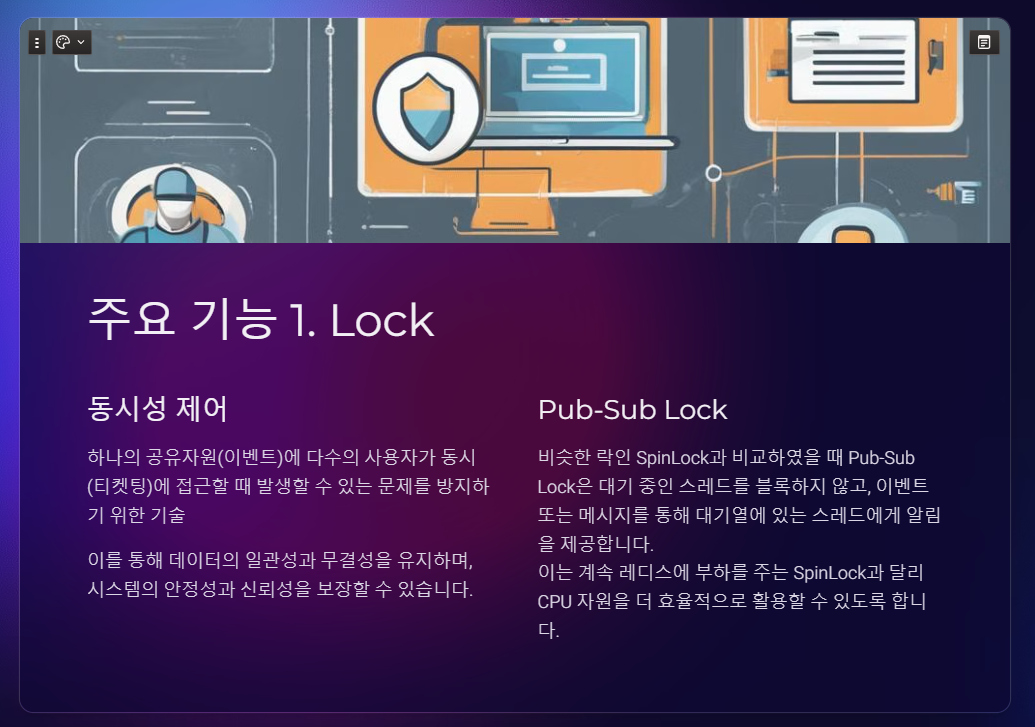 내가 만든부분은 Lock 부분이기에 내가 사용한 Lock과 그이유, 락의 점유와 해제를 바탕으로 풀어서 쓸 것이다.